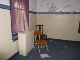Description: One of the investigators is in the children’s room and trying to get a spirit to shut one of the locker doors. Just after he demonstrates what he’d like them to try and do, a female voice says “Can’t get over there”.