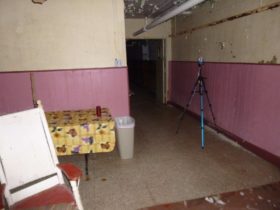 Description: This clip is a little over 6 minutes long. Everyone needs to get the full experience of this capture. When Mike, Scott, and Josie finished unpacking all of the equipment for the weekend, they left the building, but kept a recorder running at base camp. No one had entered the building the entire time they were gone. But these loud noises and voices were heard from what sounds like an old PA system, but the system hasn’t worked in the building for years.