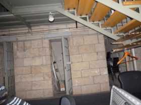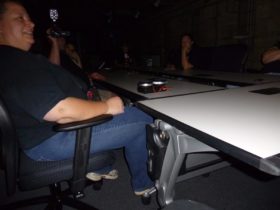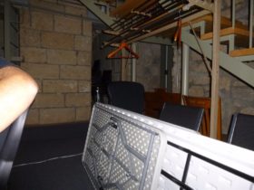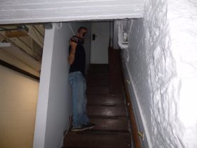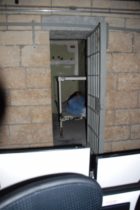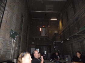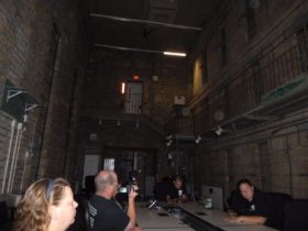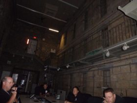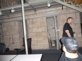 Description: During set-up, the big A/C units in the main jail were still on, so Jim is telling Steve and Dave that he’s going to call Chris, the superintendent of the jail again. Steve responds by saying that Chris is going to get mad at him for calling. Just after Steve stops talking a female voice says either “She’s mad” or “She’s mad at you”.
