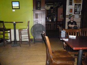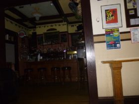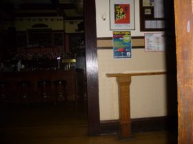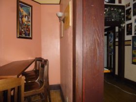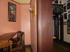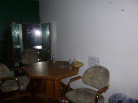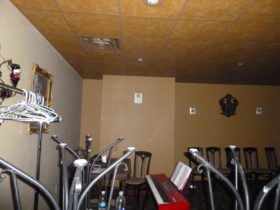 Description: While Mike and Travis were investigating the upstairs party room, Travis asks if they do a lot of their drinking in there. There’s a very faint whisper of “no” that comes in, which Mike hears with his own ears.