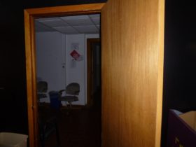 Description: Mike and Travis are either entering or exiting the Green Room in the basement. There’s a gruff male voice that says “Who is it?” or “Where is it?”