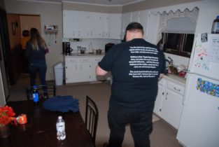 Description: The clients have left the house and the team is unpacking the equipment and having a conversation. After Allie finished speaking, a female voice is heard saying “She don’t cuss” or “She don’t cuss in here”.